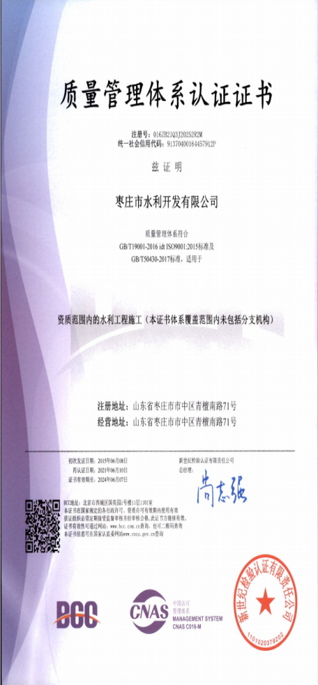 6月10日,棗莊市水利開(kāi)發(fā)有限公司順利通過(guò)了“質(zhì)量、環(huán)境、職業(yè)健康安全管理”三體系認(rèn)證審核。